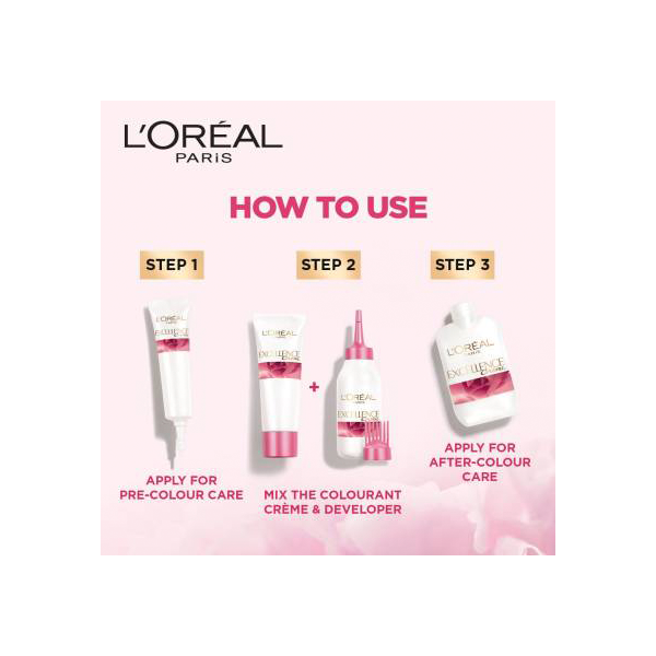 With the Loreal Paris Cream Hair Color, you can easily cover all the greys as the non-drip and creamy texture thoroughly coats each strand with color and gives you a natural finish. This kit also includes a Pre-Color Protective Treatment, ideal for fragile hair to prepare your hair for the treatment and an After-Color Protective Conditioner to enhance the look of hair color. So the next time you step out into the sun, let your glossy hair steal the limelight.